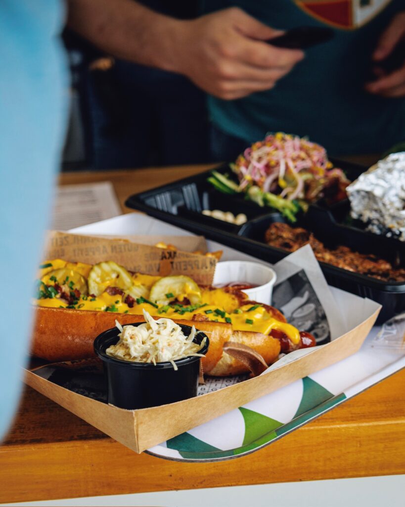 Nie zapomnij też o naszym hot-dogu z sosem BBQ i karmelizowaną cebulką. To jedna z naszych najbardziej lubianych propozycji. Dla fanów ostrzejszych smaków polecamy wersję z chili con carne. Wybór należy do Ciebie.