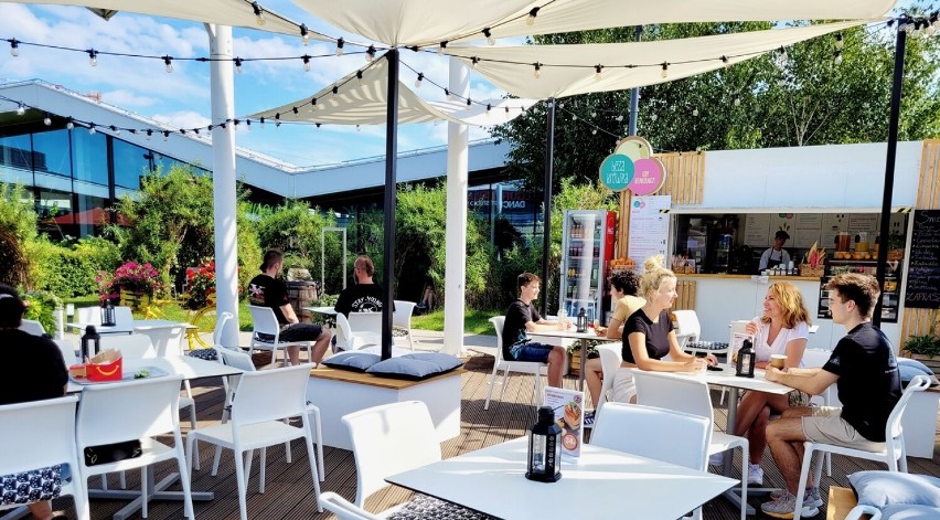 Restauracja z kawiarnianym zacięciem, znalazła dla siebie miejsce w sercu warszawskiej Białołęki. Nowy lokal płynnie łączy się z zielonym ogrodem na dachu największego centrum handlowego w tej części miasta. Miejscówka została pomyślana tak, że miło spędza się tu czas zarówno jedząc i rozmawiając pod chmurką. W sąsiedztwie znajduje się plac zabaw dla dzieci oraz tężnia solankowa, co sprawia, że przestrzeń jest przyjazna zarówno dorosłym , nastolatkom, dzieciom i osobom starszym. Tutaj miejsce jest dla każdego.